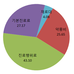 ÇàÀ§º°¼ö°¡ Áø·áºñ(60Á¶ 1,493¾ï ¿ø)´Â ±âº»Áø·á·á 27.17%(16Á¶ 3,405¾ï ¿ø), Áø·áÇàÀ§·á 43.10%(25Á¶ 9,246¾ï ¿ø), ¾àǰºñ 25.65%(15Á¶ 4,286¾ï ¿ø), Àç·á´ë 4.08%(2Á¶ 4,555¾ï ¿ø)·Î ³ªÅ¸³µ´Ù.