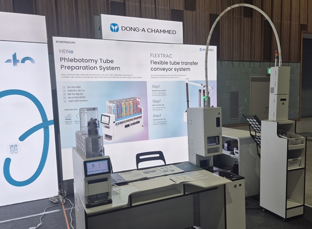 µ¿¾ÆÂü¸Þµå´Â º´¿ø ȯ°æ °³¼±À» ÅëÇÑ ÀÇ·áÁø ¾÷¹« È¿À²¼º Çâ»óÀ» À§ÇØ Ã¤Ç÷ Àü °úÁ¤°ú °Ë»ç Àü °úÁ¤À» ÀüÀÚµ¿ÈÇÑ TPAS¸¦ ±¸ÃàÇß´Ù. À̹ø Àü½Ãȸ¿¡¼ äÇ÷ °úÁ¤ÀÇ È¿À²¼ºÀ» Çâ»ó½ÃŲ Àåºñ ¡®HENe¡¯, ¡®FLEXTRAC¡¯, ¡®FLEXTRAC AIR¡¯¸¦ ¼±º¸¿´´Ù.