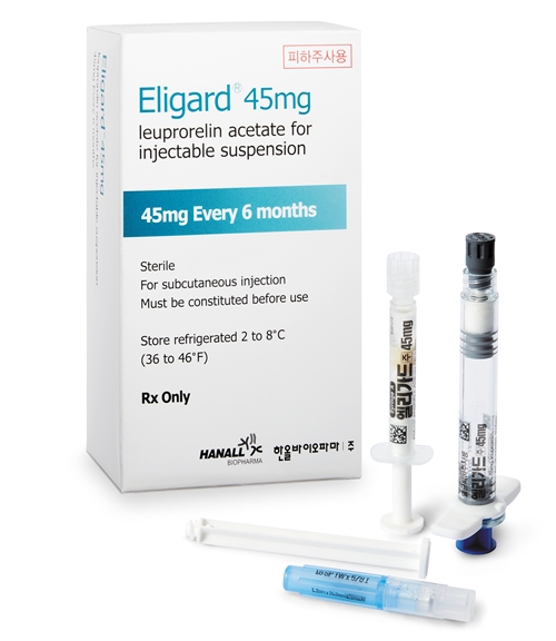 ÇѿùÙÀÌ¿ÀÆÄ¸¶´Â Áö³ 2010³â Å縶 »ç¿Í ¿¤¸®°¡µå¿¡ ´ëÇÑ µ¶Á¡ °ø±Þ°è¾àÀ» ¸Î°í 1°³¿ù(7.5mg), 3°³¿ù(22.5mg), 6°³¿ù(45mg) ÃÑ ¼¼ °¡Áö ¿ë·®À» Àü¸³¼±¾Ï Ä¡·áÁ¦(PCA)·Î ±¹³» ½ÃÀå¿¡ °ø±ÞÇϰí ÀÖ´Ù. 2023³â¿¡´Â 6°³¿ù Á¦ÇüÀÌ ÁßÃß¼º ¼ºÁ¶¼÷Áõ(CPP) Ä¡·áÁ¦·Î Ãß°¡ ½ÂÀÎÀ» ¹Þ¾Ò´Ù.
