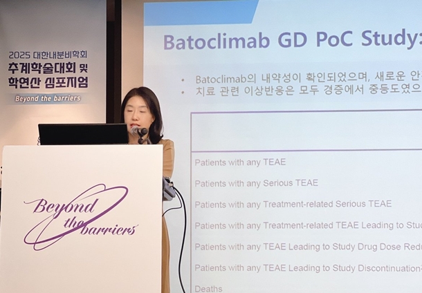 ƯÈ÷ Åõ¿© ¿Ï·á ÈÄ¿¡µµ ÁúȯÀÇ ÁÖ¿ä ¿øÀÎÀ¸·Î ¾Ë·ÁÁø ÀÚ°¡Ç×ü(TRAb)°¡ °¨¼ÒµÈ ¼öÁØÀ¸·Î À¯ÁöµÅ ±âÁ¸ Ä¡·áÁ¦·Î ÃæºÐÇÑ È¿°ú¸¦ º¸Áö ¸øÇß´ø ȯÀڵ鿡°Ô »õ·Î¿î ±âÁØÀÌ µÉ ¼ö ÀÖ´Â Ä¡·áÁ¦·Î ÁÖ¸ñ¹Þ¾Ò´Ù. ÀÓ»ó ±â°£ Áß »õ·Ó°Ô º¸°íµÈ ÀÌ»ó¹ÝÀÀÀº ¾ø¾ú´Ù.