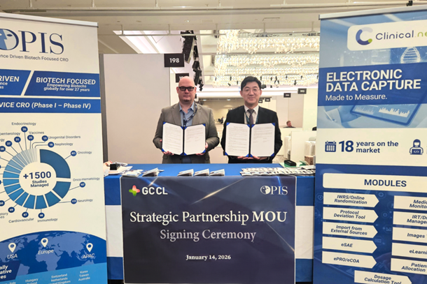 ±Û·Î¹ú ÀÓ»ó½ÃÇè °ËüºÐ¼® ±â°ü Áö¾¾¾¾¿¤(GCCL)ÀÌ Áö³ 14ÀÏ ¹Ì±¹ »÷ÇÁ¶õ½Ã½ºÄÚ¿¡¼ ¿¸®´Â ¡®2026 J.P. ¸ð°Ç ÇコÄɾî ÄÁÆÛ·±½º(JPMHC) ±â°£ Áß ±Û·Î¹ú ÀÓ»ó½ÃÇè¼öʱâ°ü(CRO) OPIS Research CRO¿Í ±Û·Î¹ú ÀÓ»ó½ÃÇè »ç¾÷ Çù·ÂÀ» À§ÇÑ Àü·«Àû ¾÷¹«Çù¾à(MOU)À» ü°áÇß´Ù°í 15ÀÏ ¹àÇû´Ù.
