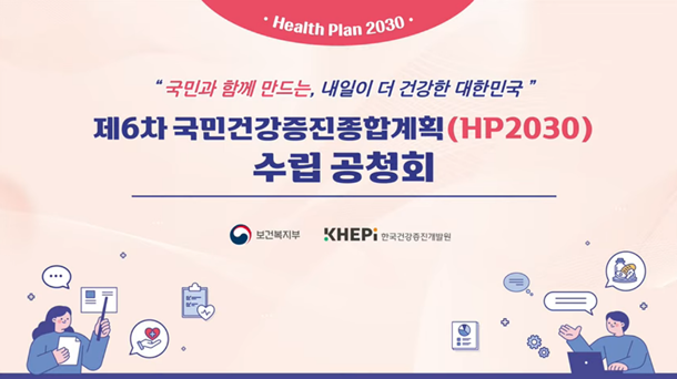 °øÃ»È¸ÀÇ Ã¹ ¹øÂ° ¼¼¼Ç¿¡¼´Â º¸°Çº¹ÁöºÎ°¡ ¡®Á¦6Â÷ ±¹¹Î°Ç°ÁõÁøÁ¾ÇÕ°èȹ¼ö¸³ ÃßÁø °æ°ú ¹× ¹æÇ⡯À» ¹ßÇ¥Çϰí, Çѱ¹°Ç°ÁõÁø°³¹ß¿øÀÌ ¡®Á¦6Â÷ ±¹¹Î°Ç°ÁõÁøÁ¾ÇÕ°èȹ(HP2030)ÀÇ ÁÖ¿ä ÁßÁ¡°úÁ¦¡¯¸¦ ¼³¸íÇß´Ù.