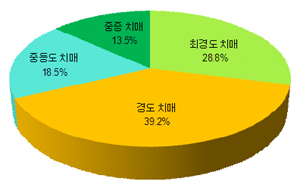 Ä¡¸Å À¯Çüº°·Î´Â Àüü Áß ¾ËÂêÇÏÀ̸Ӱ¡ 71%, Ç÷°ü¼ºÄ¡¸Å 24%, ±âŸ Ä¡¸Å°¡ 5%¸¦ Â÷ÁöÇßÀ¸¸ç, ÁßÁõµµº° Ä¡¸Å´Â Ä¡¸Å³ëÀÎ Áß ÃÖ°æµµ¿Í °æµµÄ¡¸ÅȯÀÚ°¡ ¾à 70%·Î ³ªÅ¸³ª ÀÌ´Â Á¶±â¹ß°ß°ú Á¶±âÄ¡·á¸¦ ÅëÇÑ Ä¡¸ÅÀÇ ÁßÁõÈ ¹æÁö°¡ ½Ã±ÞÇÑ °ÍÀ¸·Î µå·¯³µ´Ù.