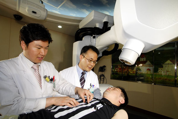 Ä¡·á°úÁ¤Àº ÀÏ¹Ý ¹æ»ç¼±Ä¡·á¿Í °ÅÀÇ ºñ½ÁÇÏ´Ù. ÀÇ»ç¿Í »ó´ã ÈÄ CT³ª MRI¸¦ ÃÔ¿µÇÏ¿© ¾ÏÀÇ À§Ä¡¿Í Å©±â¸¦ Á¤È®ÇÏ°Ô ÆÄ¾ÇÇÑ ´ÙÀ½ ÄÄÇ»Å͸¦ ÀÌ¿ëÇÏ¿© Ä¡·á°èȹÀ» ¼¼¿ì´Â °Í ±îÁö´Â ´Ù¸¥ ¹æ»ç¼±Ä¡·á³ª ÀÏ¹Ý »çÀ̹ö³ªÀÌÇÁ¿Í °ÅÀÇ °°´Ù.