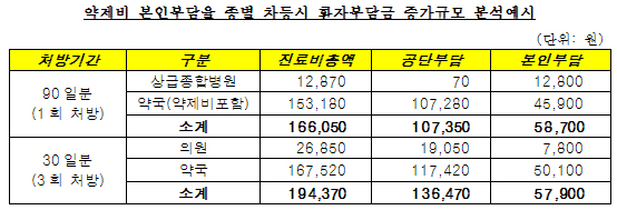 ¿©±â´Ù »ó±ÞÁ¾ÇÕº´¿øÀÇ ¾àÁ¦ºñ º»ÀκδãÀ²À» 30%¿¡¼ 40%·Î »óÇâ Á¶Á¤ÇÏ´Â °ÍÀ» °¡Á¤ÇØ °è»êÇϸé 1¸¸5õ300¿øÀ» ȯÀÚ°¡ ´õ ³»¾ßÇÑ´Ù´Â °è»êÀÌ ³ª¿Â´Ù.