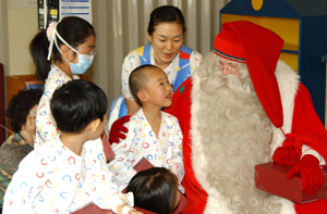 »êŸŬ·Î½º´Â °¢ º´½ÇÀ» µ¹¸ç 100¿© ¸íÀÇ ¾ÆÀ̵鿡°Ô ÁغñÇØ ¿Â Å©¸®½º¸¶½º ¼±¹°À» ÀÏÀÏÀÌ Àü´ÞÇÏ¸ç ¿ÏÄ¡¸¦ ±â¿øÇß´Ù.