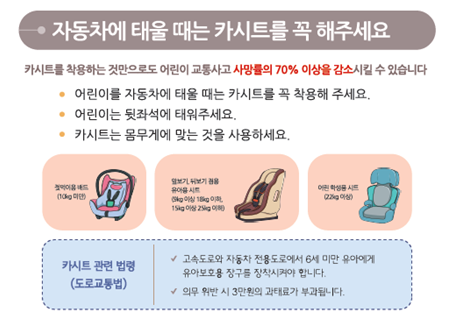Á¤±â¼® Áúº´°ü¸®º»ºÎÀåÀº ¡°¿¬¸» °¡Á·¿©ÇàÀ̳ª Æò¼Ò ³ªµéÀÌ ¶§ Â÷·® µ¿½Â ½Ã¿¡´Â ¹Ýµå½Ã ÀÚ³àÀÇ ¼ÒÁßÇÑ »ý¸í°ú °Ç°À» À§ÇØ ¿¬·É°ú üÁß¿¡ ¸Â´Â Ä«½ÃÆ®¸¦ Âø¿ëÇØ¾ß Çϰí, ´Ù¸¥ °¡Á·µéµµ ¾ÈÀüº§Æ® Âø¿ëÀ» ´çºÎÇß´Ù.