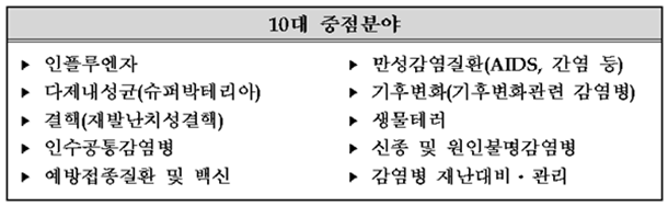 °¨¿°º´¿¬±¸Æ÷·³Àº »ê¡¤ÇС¤¿¬¡¤°ü °øµ¿À¸·Î ±¸¼ºµÇ¾î ÀÖÀ¸¸ç, ±¹°¡°¡ ÁýÁßÀ°¼º °ü¸®ÇØ¾ß ÇÒ 10´ë ÁßÁ¡ºÐ¾ßº°·Î ºÐ°úÆ÷·³À» ±¸¼ºÇÏ¿© ¿î¿µ ÁßÀÌ´Ù.