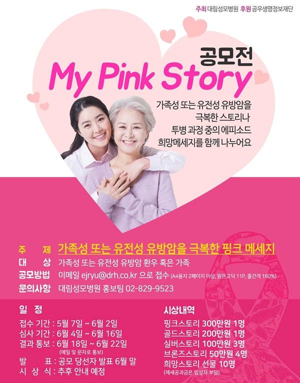 ´ë¸²¼º¸ðº´¿ø°ú °ø¿ì»ý¸íÁ¤º¸Àç´ÜÀÌ °¡Á·¼º¡¤À¯Àü¼º À¯¹æ¾ÏÀ» ÁÖÁ¦·Î Á¦1ȸ ¡®My Pink Story¡¯ °ø¸ðÀüÀ» °³ÃÖÇÑ´Ù.
