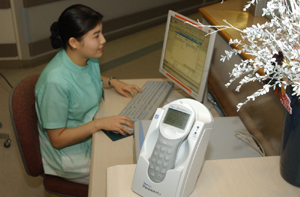 ½Å±ÔµµÀÔÇÑ ³×Æ®¿öÅ©Çü Ç÷´çÃøÁ¤±â´Â °Ë»çÀÚ¿Í È¯ÀÚÀÇ ¹ÙÄڵ带 ÀνÄÇÑ ÈÄ Ç÷´ç°Ë»ç¸¦ Çϸé, °Ë»çÀÚ¿Í È¯ÀÚÁ¤º¸´Â ¹°·Ð °Ë»ç°á°ú°¡ ±â±â¿¡ ÀÚµ¿ ÀԷµȴÙ. °Ë»ç ÈÄ ±â±â¸¦ ÄÄÇ»ÅÍ ¿¬°áÀåÄ¡¿¡ ¾ñ¾î ³õ±â¸¸ ÇÏ¸é ³×Æ®¿öÅ© ¸ÁÀ» ÅëÇØ EMR¿¡ ¿ø½ºÅéÀ¸·Î ÀúÀåµÇ±â ¶§¹®¿¡ µû·Î ÀÔ·ÂÇØ¾ß ÇÏ´Â ¼ö°í¸¦ ´ú°Ô µÇ¾î ½Å¼ÓÇϰí Á¤È®ÇÑ ¾÷¹«¸¦ ±¸ÇöÇÒ ¼ö ÀÖ°Ô µÆ´Ù.