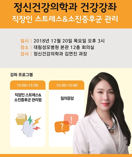 ´ë¸²¼º¸ðº´¿øÀº À̹ø °Ç°°Á¸¦ ÅëÇØ Á÷ÀåÀÎ ½ºÆ®·¹½º °ü¸®¹ý, ¼ÒÁøÁõÈıº Ä¡·á¹ý, Àϰú »îÀÇ ±ÕÇüÀ» ã´Â ¹æ¹ý µî¿¡ ´ëÇØ ÀÚ¼¼È÷ ¾Ë¸± ¿¹Á¤ÀÌ´Ù. Àü¹®ÀÇÀÇ °Àǰ¡ ÁøÇàµÈ ÈÄ Âü¼®ÀÚµéÀÇ ±Ã±ÝÁõÀ» ÇØ¼ÒÇÒ ¼ö ÀÖ´Â ÁúÀÇÀÀ´ä ½Ã°£µµ ¸¶·ÃµÇ¾î ÀÖ´Ù.