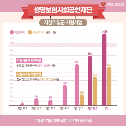 | »ý¸íº¸ÇèÀç´Ü, ÀÚ»ì½ÃµµÀÚ 1,488¸í°ú ÀÚ»ìÀ¯°¡Á· 462¸í Áö¿ø |