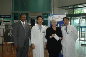 À̳¯ Àü´Þ½Ä¿¡¼ ±è¿øÀåÀº ¿ø³» 12°³ ¸ð±Ýó¿¡¼ º´¿øÀ» ãÀº ȯÀÚ, º¸È£ÀÚ ¹× Á÷¿ø µîÀÌ Âü¿©ÇØ ¸ðÀº 56¸¸3,110¿ø¿¡ º´¿ø¿¡¼ Áö¿øÇÑ 170¸¸¿øÀ» ÇÕÃÄ ¸ðµÎ 226¸¸3,110¿øÀ» ¸¶¼È ´ëÇ¥¿¡°Ô Àü´ÞÇß´Ù.