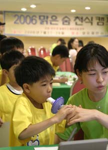 Áö³ 7¿ù 28ÀÏ °æ±âµµ ¿ëÀÎÆÄÀθ®Á¶Æ®¿¡¼ õ½Ä ¹× ¾Ë·¹¸£±â¿¹¹æ¿îµ¿º»ºÎ ÁÖÃÖ·Î ¿¸° '¸¼Àº ¼û ¾î¸°ÀÌ Ãµ½ÄÄ·ÇÁ'¿¡¼ ¾î¸°ÀÌ Âü°¡ÀÚµéÀÌ °Ç°»óÅ üũ¸¦ À§ÇØ Æó±â´É°Ë»ç¸¦ ¹Þ°í ÀÖ´Ù.