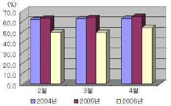 ÀÌ·Î ÀÎÇØ 󹿷ü 80%¸¦ ÃʰúÇÏ´Â ±â°üÀÇ ±¸¼ººñ´Â 2005³â 29.5%(2,680°³¼Ò)¿¡¼ 2006³â 13.5%(1,228°³¼Ò)·Î °ø°³ ÀÌÈÄ Å©°Ô ÁÙ¾îµé¾ú´Ù.
