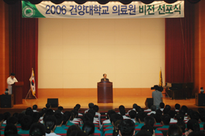 ¿À´Ã ºñÀü ¼±Æ÷½Ä¿¡´Â Çб³¹ýÀÎ °Ç¾çÇпø ±¸º»Á¤ ÀÌ»çÀå, °Ç¾ç´ë ±èÈñ¼ö ÃÑÀåÀ» ºñ·ÔÇÏ¿© ÀÇ·á¿ø »êÇÏ ±³Á÷¿ø 300¿©¸íÀÌ Âü¼®, ¿ÀÇÁ´×Çà»ç¿¡ ÀÌ¾î °Ç¾ç´ëÀÇ·á¿øÀÇ NEW ºñÀüÀ» ¼±¾ðÇÏ°í °í°´¿¡°Ô ±â»ÝÁÖ´Â º´¿ø, ´ëÀü.ÃæÃ»±ÇÀÇ ¸í¹®´ëÇк´¿øÀ¸·Î µµ¾àÇÏ´Â Á÷¿øµéÀÇ °áÀǸ¦ ´ÙÁ³´Ù.