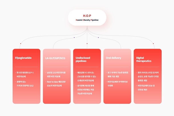 H.O.P ÇÁ·ÎÁ§Æ®¿¡´Â ¿¡Æä±Û·¹³ªÅ¸ÀÌµå ¿Ü¿¡µµ ¼ö¼úÀû ¿ä¹ý¿¡ µû¸¥ üÁß °¨·® È¿°ú(25% ³»¿Ü)¿¡ ¹ö±Ý°¡´Â °·ÂÇÑ È¿°ú¸¦ È®ÀÎÇÑ LA-GLP/GIP/GCG(ÄÚµå¸í : HM15275), GLP-1 Á¦Á¦ »ç¿ë½Ã ³ªÅ¸³¯ ¼ö ÀÖ´Â ±ÙÀ°·® ¼Õ½ÇÀ» ¹æÁöÇØ üÁß °¨·®ÀÇ Ä÷¸®Æ¼¸¦ °³¼±ÇÏ°í ¿ä¿ä Çö»ó ¾ïÁ¦¿¡ µµ¿òÀ» ÁÙ ¼ö ÀÖ´Â ¹ÙÀÌ¿À½Å¾à, ¼·½ÄÀå¾Ö °³¼±Á¦, °æ±¸¿ë ºñ¸¸Ä¡·áÁ¦, ºñ¸¸ ¿¹¹æ°ú °ü¸®¿¡ Àû¿ëÇÒ ¼ö ÀÖ´Â µðÁöÅÐÄ¡·áÁ¦ µîÀÌ Æ÷ÇԵŠÀÖ´Ù.
