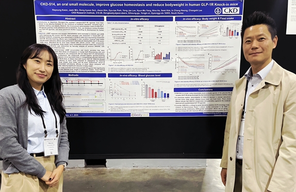 4ÀÏ ¹Ì±¹ ¾ÖƲ¶õŸ¿¡¼ ¿¸° ¡®2025 ¹Ì±¹ºñ¸¸ÇÐȸ(2025 Obesity Week)¡¯¿¡¼´Â °æ±¸¿ë GLP-1 ¼ö¿ëü ÀÛ¿ëÁ¦(GLP-1RA) ½Å¾à Èĺ¸¹°Áú ¡®CKD-514¡¯ÀÇ ºñÀÓ»ó ¿¬±¸ ¼º°ú¸¦ ¹ßÇ¥Çß´Ù. CKD-514´Â ¿ëÇØµµ °³¼±À» ÅëÇÑ ±¸Á¶Àû ÀÌÁ¡À» ¹ÙÅÁÀ¸·Î ´ëµ¿¹° ¸ðµ¨¿¡¼ ¿ì¼öÇÑ °æ±¸ »ýüÀÌ¿ë·ü(Dog BA)À» º¸¿´À¸¸ç, °æ±¸¿ë ºñ¸¸Ä¡·áÁ¦ ¿ÀÆ÷±Û¸®ÇÁ·Ð(Orforglipron) ´ëºñ ÀûÀº ¿ë·®¿¡¼ À¯ÀÇÇÑ Ã¼Áß °¨¼Ò È¿°ú¿Í µ¿ÀÏ ¿ë·® ´ëºñ ¿ì¼öÇÑ Ç÷´ç °ÇÏ È¿°ú¸¦ ³ªÅ¸³Â´Ù. CKD-514ÀÇ ÈÄ¼Ó ÈÇÕ¹°±º ¿ª½Ã ¿ÀÆ÷±Û¸®ÇÁ·Ð°ú ¼¼¸¶±Û·çŸÀ̵å(Semaglutide)¿ÍÀÇ ºñ±³ ½ÃÇè¿¡¼ µÎ ¾à¹°°ú µ¿µîÇϰųª ¿ì¿ùÇÑ ´ë»ç °³¼± È¿°ú°¡ ÀÖÀ½À» È®ÀÎÇß´Ù. º¹¿ë ÆíÀǼºÀÌ ³ôÀº °æ±¸ Á¦Çü ºñ¸¸Ä¡·áÁ¦ °³¹ß¿¡ ¼º°øÇÑ´Ù¸é, ÁÖ»çÇü ºñ¸¸ Ä¡·áÁ¦°¡ ÁÖ·ù¸¦ ÀÌ·ç´Â ±Û·Î¹ú ½ÃÀå¿¡¼ Â÷º°¼º°ú °æÀï·ÂÀ» È®º¸ÇÒ °ÍÀ¸·Î ±â´ëµÈ´Ù.