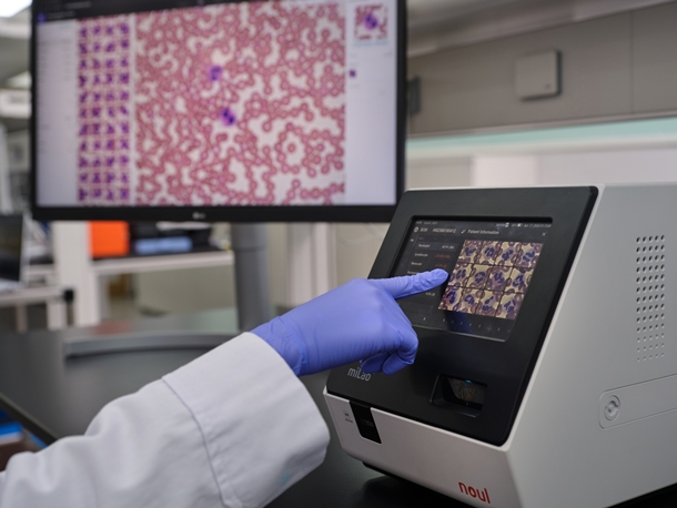 ³ëÀ»ÀÇ Ç÷¾×ºÐ¼® ¼Ö·ç¼Ç(miLab BCM)Àº ÀüÇ÷±¸°Ë»ç(CBC)¿Í ÇüÅÂÇÐ ±â¹Ý Çö¹Ì°æ °Ë»ç¸¦ ÇϳªÀÇ Àåºñ¿¡¼ ÅëÇÕ ¼öÇàÇÏ´Â ¿ÃÀοø Áø´Ü Ç÷§ÆûÀÌ´Ù. AI ±â¹Ý Â÷¼¼´ë À̹ÌÁö ¼¼Æ÷ºÐ¼®(Image Cytometry) ±â¼úÀ» Àû¿ë, CBC °Ë»ç¿¡ ´õÇØ ¹Ì¼º¼÷ °ú¸³±¸(IG), ¾Æ¼¼Æ÷(blast) µî º°µµ µµ¸»°Ë»ç¸¦ ÅëÇØ È®ÀÎÇÏ´ø ¹Ì¼¼ÇÑ ÀÌ»ó¼¼Æ÷ ÆÇº°±îÁö °¡´ÉÇÏ´Ù´Â Á¡¿¡¼ Â÷º°ÈµÈ´Ù. ƯÈ÷ ÀüÇ÷±¸°Ë»ç(CBC)´Â °Ç°°ËÁø ¹× ¿©·¯ Áúȯ Áø´Ü µî¿¡ Æø³Ð°Ô Ȱ¿ëµÇ´Â ±âº» °Ë»ç Ç׸ñÀ¸·Î, Áø´Ü ¿µ¿ª»Ó¸¸ ¾Æ´Ï¶ó ½Å¾à°³¹ß¡¤¸é¿ªÇÐ ¿¬±¸ µî ´Ù¾çÇÑ ºÐ¾ß·Î È®ÀåÀÌ °¡´ÉÇØ ¼±Áø±¹ ÀÇ·áȯ°æ¿¡¼ ¼ö¿ä°¡ ³ô´Ù.