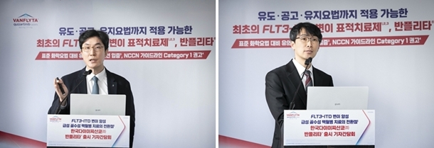 Á¶ ±³¼ö´Â "FLT3 ÀúÇØÁ¦ÀÇ µîÀåÀ¸·Î Ä¡·á ÆÐ·¯´ÙÀÓÀÌ ¹ßÀüÇÔ¿¡µµ ºÒ±¸Çϰí, FLT3 º¯ÀÌ ¾ç¼º AMLÀº ±âÁ¸ FLT3 ÀúÇØÁ¦¿Í ÈÇпä¹ý º´¿ë ½Ã 2³â ´©Àû Àç¹ß·üÀÌ ¾à 40%¿¡ ´ÞÇÏ´Â °ÍÀ¸·Î °üÂûµÈ´Ù¡±¸ç "ÀÌÁß¿¡¼ ´Ù¼ö¸¦ Â÷ÁöÇÏ°í ¿¹Èİ¡ ºÒ·®ÇÑ FLT3-ITD º¯ÀÌ ¾ç¼º AML ȯÀÚÀÇ ¿¹Èĸ¦ °³¼±ÇÒ ¼ö ÀÖ´Â »õ·Î¿î Ä¡·á ¿É¼Ç¿¡ ´ëÇÑ ¹ÌÃæÁ· ¼ö¿ä°¡ ³ôÀº »óȲ"À̶ó°í °Á¶Çß´Ù.