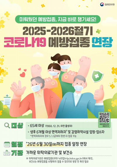 Áúº´°ü¸®Ã»Àº ¿¹¹æÁ¢Á¾Àü¹®À§¿øÈ¸ ½ÉÀÇ(4.3)¸¦ °ÅÃÄ Äڷγª19 °íÀ§Ç豺À» ´ë»óÀ¸·Î ´çÃÊ 4¿ù 30ÀÏ Á¾·á ¿¹Á¤ÀÎ 2025-2026Àý±â Á¢Á¾À» 6¿ù 30ÀϱîÁö ¿¬ÀåÇÑ´Ù. À̹ø Á¶Ä¡´Â ¿©¸§Ã¶ Äڷγª19 ÀçÀ¯Çà °¡´É¼º¿¡ ´ëºñÇϱâ À§ÇÑ °ÍÀ¸·Î, °íÀ§Ç豺ÀÇ ¹ÌÁ¢Á¾ ºñÀ²ÀÌ ¿©ÀüÈ÷ ³ôÀº »óȲÀ» °í·ÁÇØ °áÁ¤µÆ´Ù.