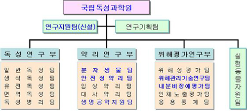 ¡®±¹¸³µ¶¼º°úÇпø¡¯Àº µ¶¼ºÀü¹® ±¹°¡±â°üÀ¸·Î¼ ½Äǰ, ÀǾàǰ ¾ÈÀü°ü¸® ¹× °úÇбâ¼ú ȯ°æº¯È¿¡ ´Éµ¿ÀûÀ¸·Î ´ëÀÀÇÏ°í ¹Ì·¡ ±¹°¡µ¶¼º¿¬±¸¸¦ ¼±µµÇÏ´Â Á¶Á÷ È¿À²¼ºÀ» ³ôÀ̱â À§ÇÏ¿© °¢ ¿¬±¸ºÎ¼ÀÇ ¿ªÇÒ ¹× ±â´ÉÀ» Á¤ºñÇÏ¿´´Ù.