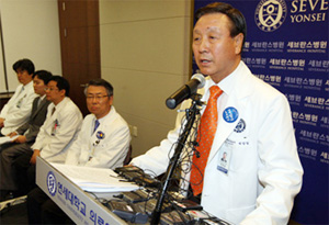 ¡ã ¿¬¼¼´ë ¹ÚâÀÏ ÀÇ·á¿øÀåÀÌ ±âÀÚȸ°ßÀ» Çϰí ÀÖ´Ù
