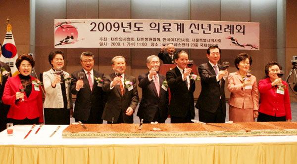 ´ëÇÑÀÇ»çÇùȸ, ´ëÇѺ´¿øÇùȸ, Çѱ¹¿©ÀÚÀÇ»çȸ, ¼¿ï½ÃÀÇ»çȸ°¡ °øµ¿ °³ÃÖÇÏ´Â ÀÇ·á°è 2009³â ½Å³â±³·Êȸ°¡ 7ÀÏ Çѱ¹ÇÁ·¹½º¼¾ÅÍ¿¡¼ ¿·È´Ù.