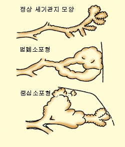 º´¸®ÀûÀ¸·Î´Â Æó¼ÒÆ÷ÀÇ È£Èí±â°üÁö¿Í ÆóÆ÷°üÀ» Æ÷ÇÔÇÏ´Â Áß½É¼ÒÆ÷Çü(centriacinar)°ú Æó¼ÒÆ÷